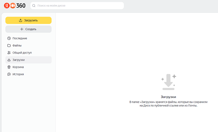 На вкладке Загрузки отображаются все загруженные папки и файлы.