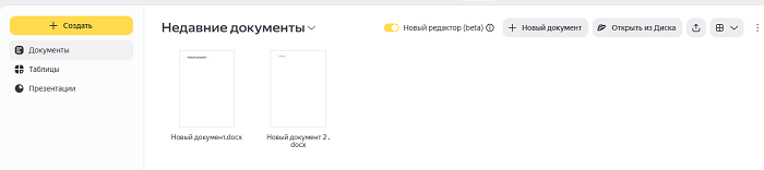 открытие документа или таблицы, которые хранятся на Яндекс Диске;