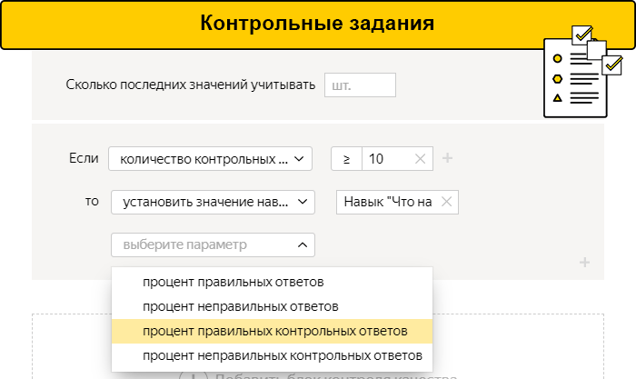Правила контроля качества желательно комбинировать. Например, если задания предполагают выбор ответа из нескольких вариантов, то стоит использовать:
