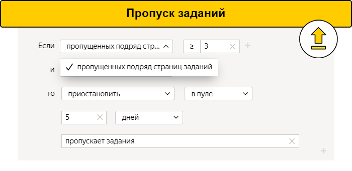 Настройте правило Пропуск заданий, чтобы ограничить доступ исполнителям, которые пропускают несколько страниц заданий подряд.