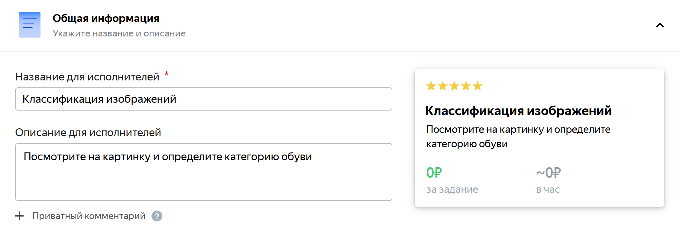 Определенная цель для разметки. Например, модерация комментариев, классификация изображений, транскрипция аудиозаписей или еще что-то.