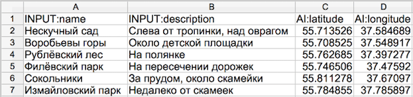Столбцы с обязательными полями входных данных должны быть заполнены. Остальные столбцы можно удалить, если они пустые.