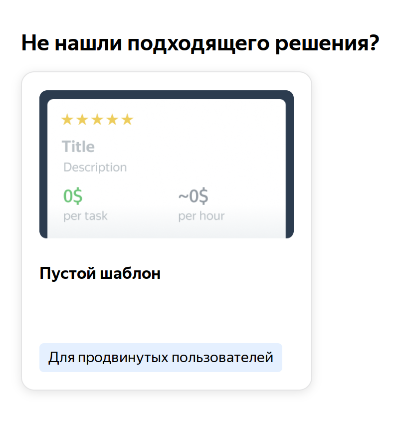 Преднастроенный проект, содержащий описание, инструкцию, предопределенные поля входных и выходных данных и интерфейс задания, которые можно редактировать.