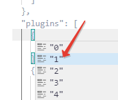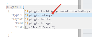 Горячие клавиши добавляются в блок plugins. Установите курсор после открывающей квадратной скобки блока plugins и нажмите Tab. В появившемся списке выберите plugin.hotkeys.