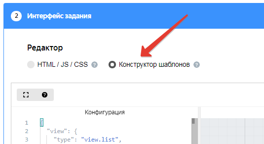 Выберите Конструктор шаблонов в разделе Интерфейс задания.