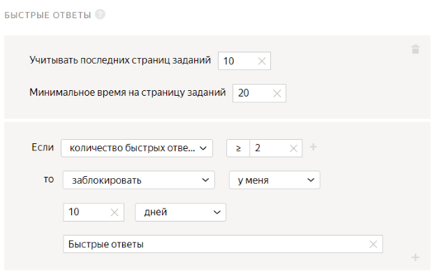 Быстрые ответы — отсеивает исполнителей, которые отвечают слишком быстро.