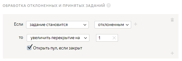 Задайте правило для отклоненного задания: если задание становится отклоненным, то увеличить перекрытие на1. А также включите опцию Открыть пул, если закрыт.
