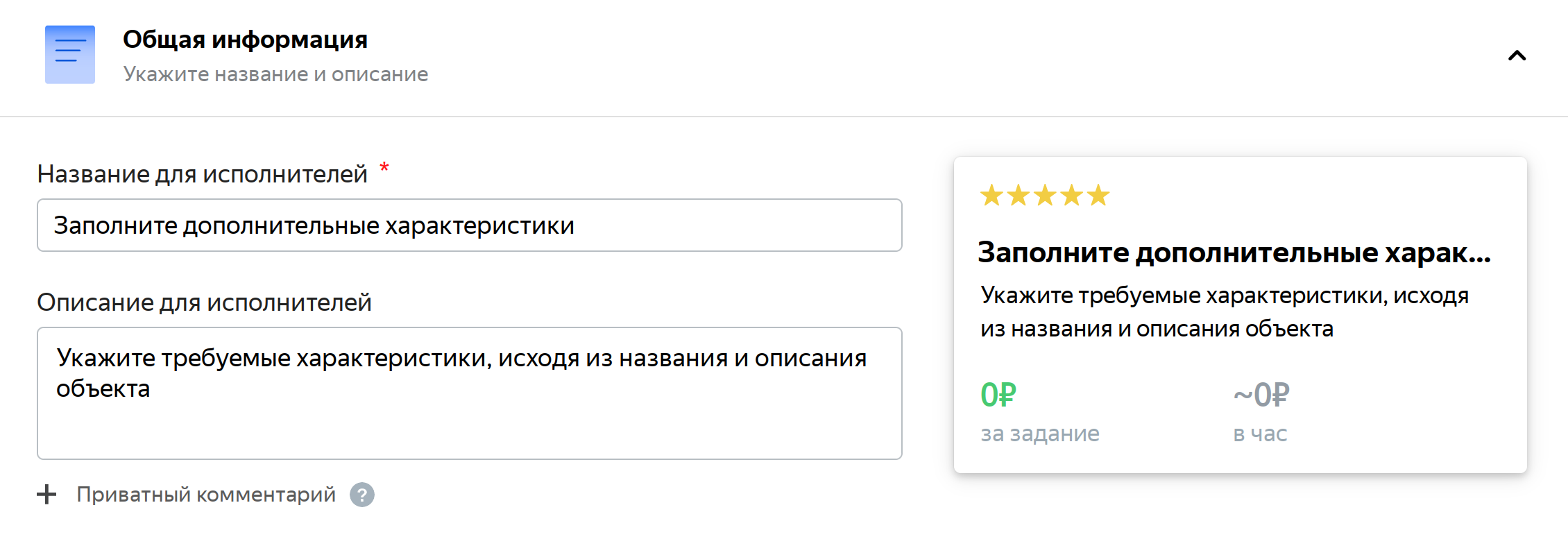Описание для исполнителей — краткое описание, которое будет отображаться в списке заданий для исполнителей.