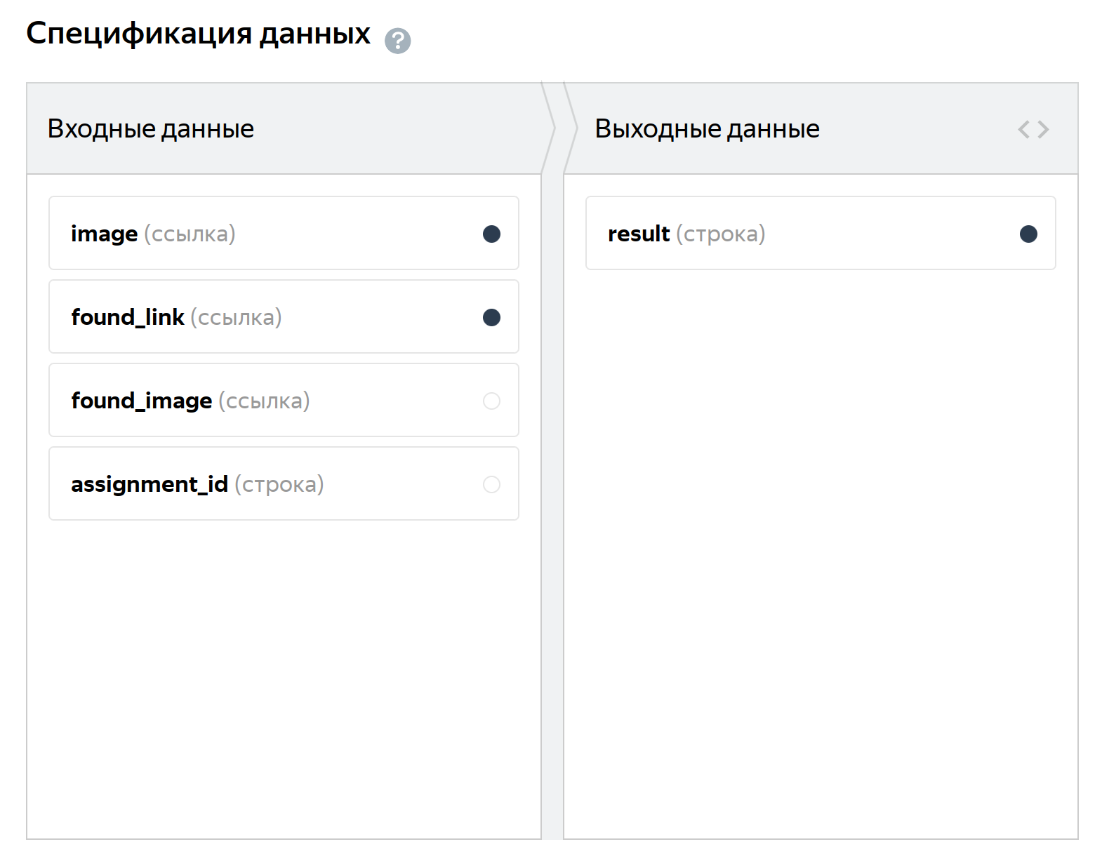 Чтобы определить, какие данные вы будете передавать исполнителю и получать в ответ, необходимо создать поля входных и выходных данных.