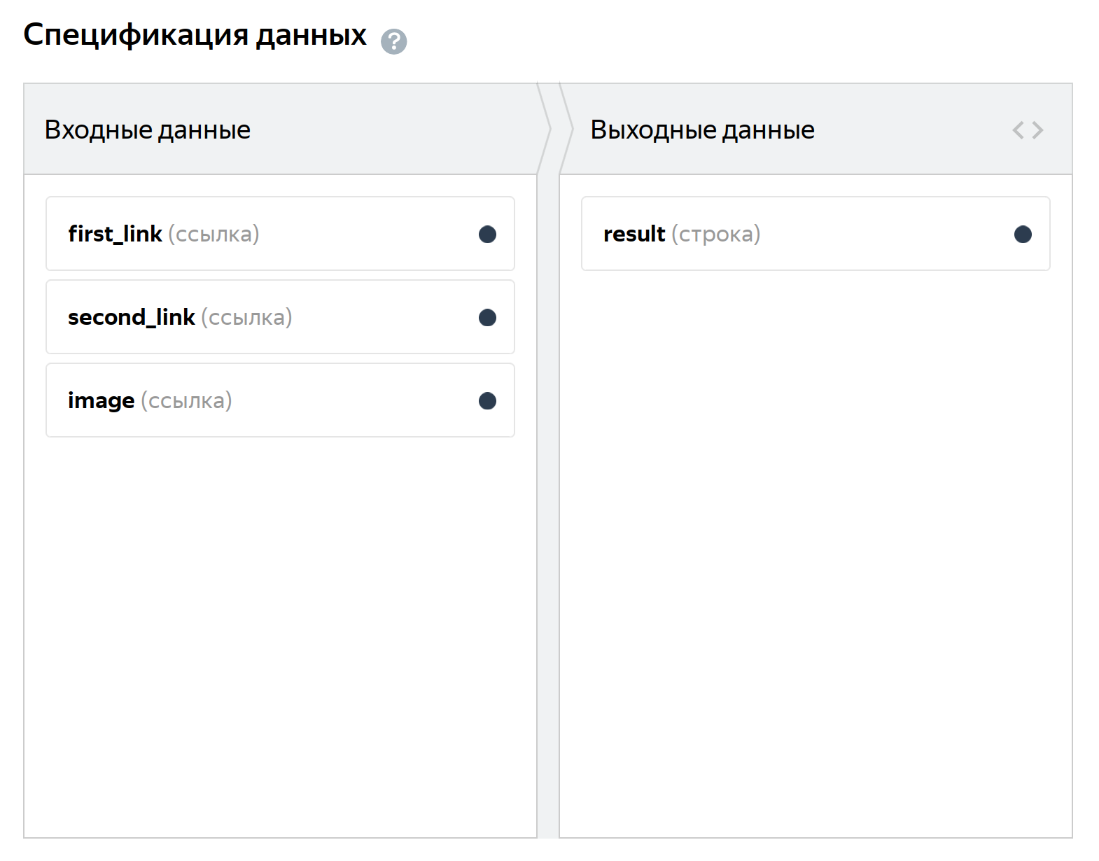 Чтобы определить, какие данные вы будете передавать исполнителю и получать в ответ, необходимо создать поля входных и выходных данных.