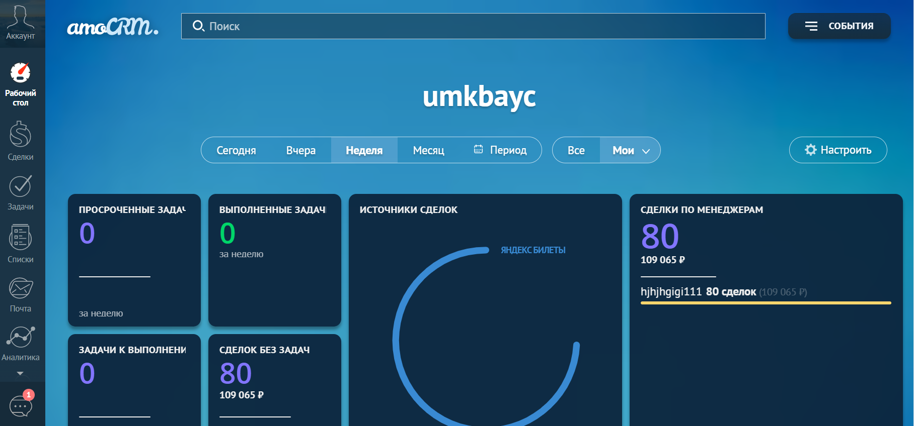 После успешной синхронизации в amoCRM появится сделка с заполненными полями. Синхронизация билетной системы и amoCRM происходит в течение 15 минут.