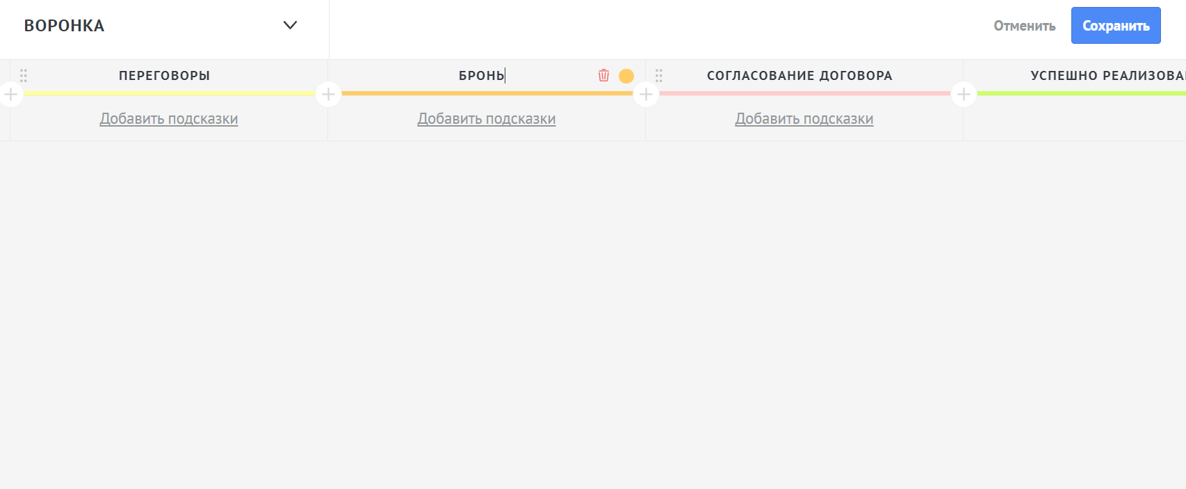 По желанию вы можете переименовать этапы сделок в соответствии со статусами заказов: