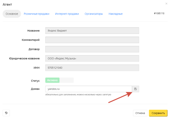 В открывшейся вкладке Основное укажите дополнительные домены в поле Домен через запятую.