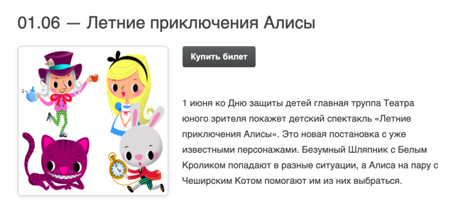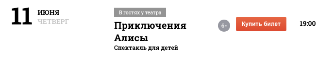 - Абонемент — виджет будет содержать несколько спектаклей или матчей, зритель сможет оформить на них абонемент.