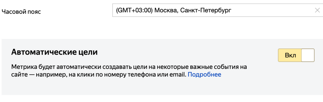 Автоцели – это цели, отправку которых Метрика сама фиксирует и, соответственно, создает цель. Цель – это какое-либо действие пользователя на сайте (подробнее – в Cправке).