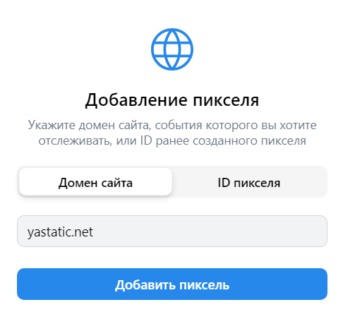 Нажмите кнопку Добавить пиксель и укажите домен yastatic.net.