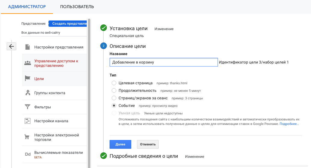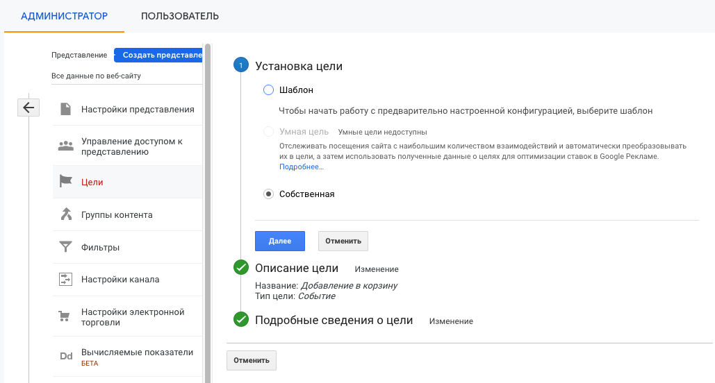 - Если вы удалите цель, собранная по ней информация не будет доступна в отчетах.