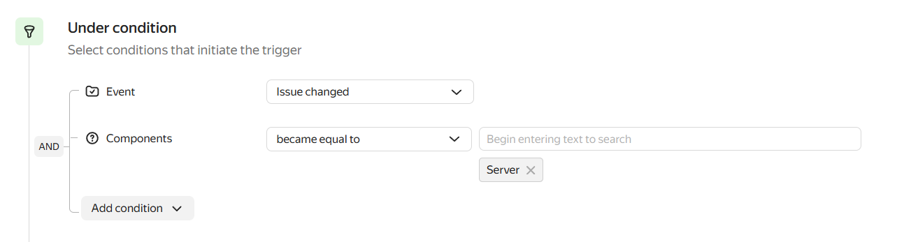 Trigger conditions: the value in the Components field changed to Server.