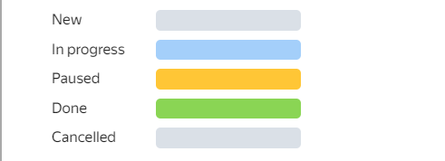 By default, issue bars on the chart are colored according to the issue status types set in the workflow editor.