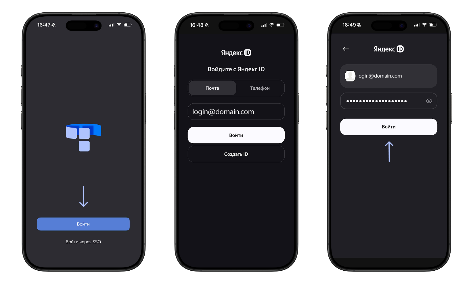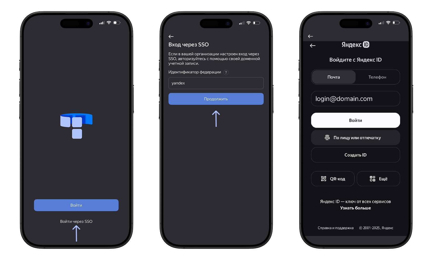 - Log in using Yandex ID: Log in using your Yandex account or the email address on your organization's domain.