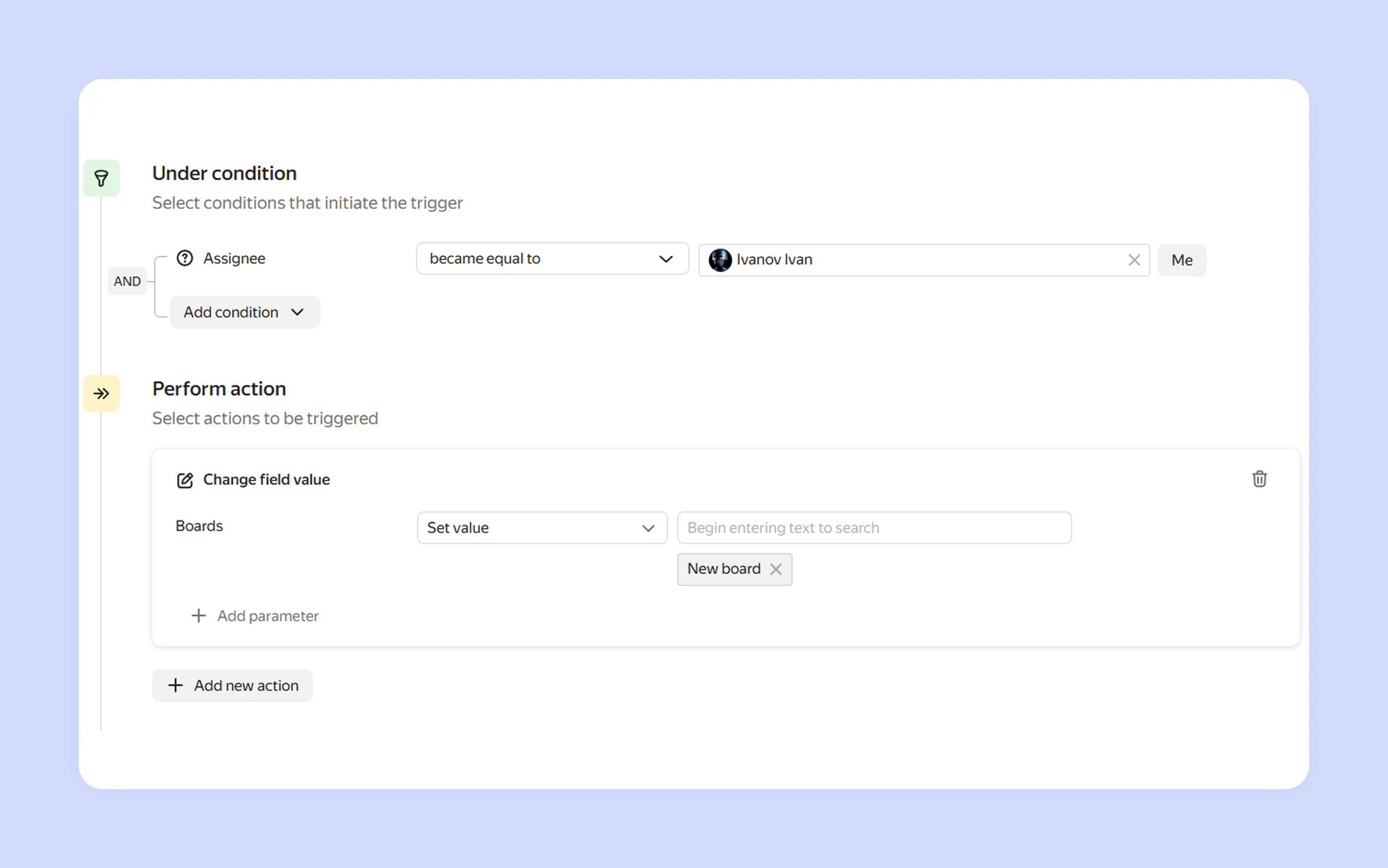 You can now edit automations faster and easier: the automation conditions and actions are now visually divided into blocks and the most popular settings are available in just one click. You can now also use a trigger to add an issue to an active sprint on the board.