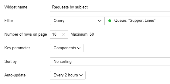 Managers and staff members of the support team often require various kinds of information about the ongoing issues as well as statistics on previously resolved requests. In Tracker, you can view all relevant information and statistics on a dashboard. First, create a dashboardand then add widgets. These may include issue lists, tables, and charts, all of which are created automatically based on filters.