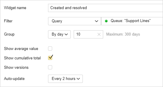 If you want to display the totals for created and resolved requests on the chart, select Show cumulative total.
