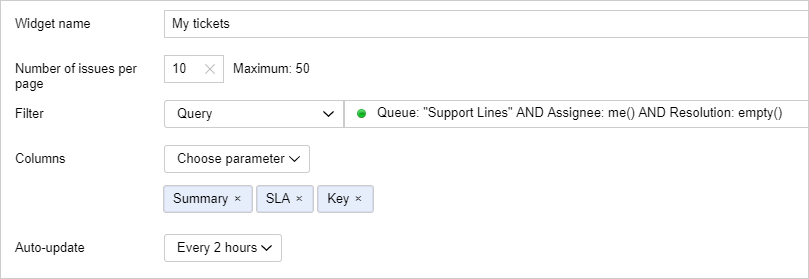 To display the SLA rules timer in the issue list, add the SLA parameter to the Columns field.