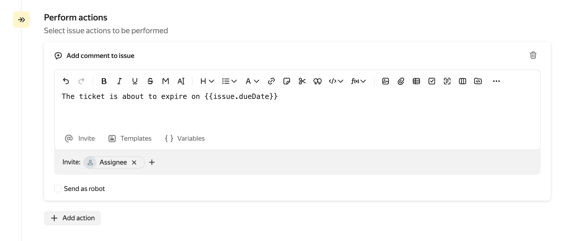 Set up the auto action: inviting the issue assignee to comment. For that: