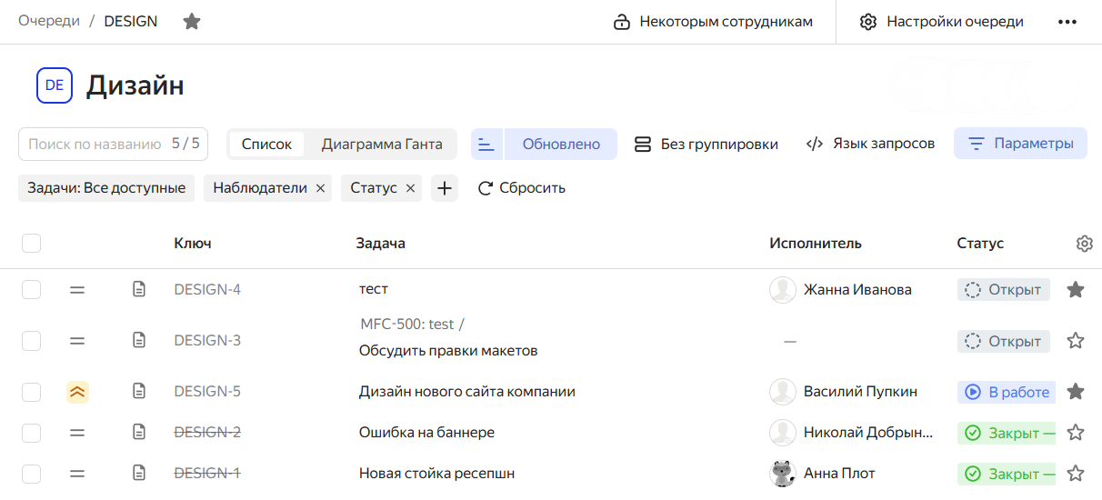 Помимо рабочего процесса, в очереди можно настроить права доступа к задачам, автоматизированную обработку задач, интеграцию с почтой, Яндекс Формами и так далее. Эти возможности позволяют гибко настроить очередь под задачи вашей команды.