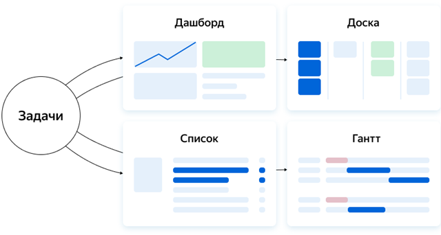 В Трекере есть несколько инструментов, которые позволяют быстро и наглядно получать информацию о задачах, чтобы следить за ходом работы и контролировать результаты.