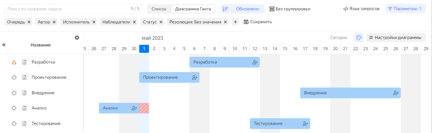 Диаграмма Ганта в Трекере — это инструмент для составления календарного плана работ над задачами.