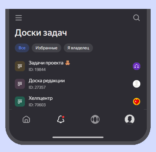 В мобильном приложении Трекера теперь можно просматривать и удалять доски задач. Создание и редактирование пока недоступны. Подробнее: Доски