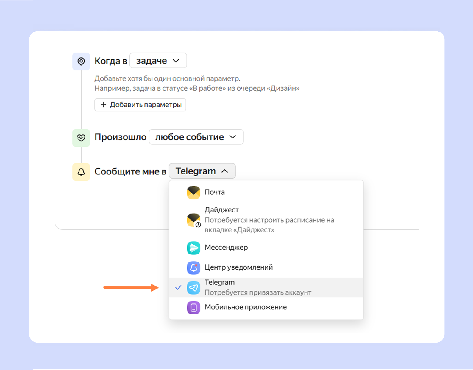 В Конструкторе уведомлений появился новый канал Telegram.