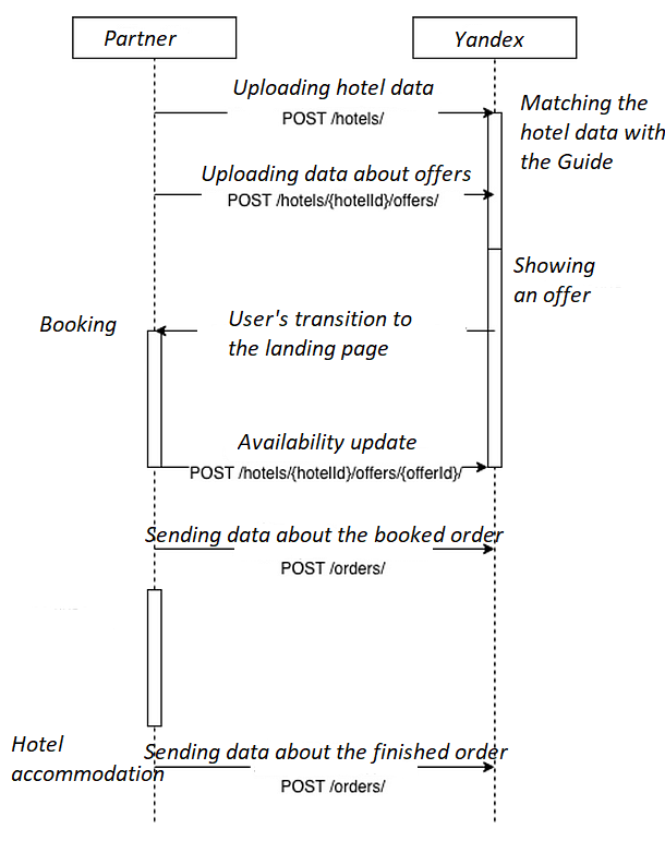 Use the API capabilities to pass the following data to Yandex: information about the hotels, room availability and rates, and the bookings made by people who went to your site from Yandex universal search results.