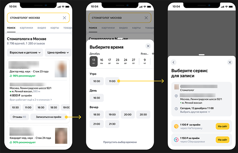 To connect, contact support at med-search@yandex-team.ru. Put “Integration of online doctor appointment schedule: cooperation proposal from