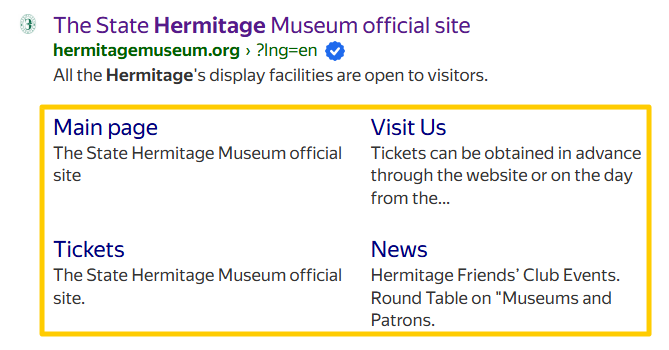 Sitelinks are generated automatically by the Yandex robot. The robot determines the most visited sections of the site and generates sitelinks under the following conditions: