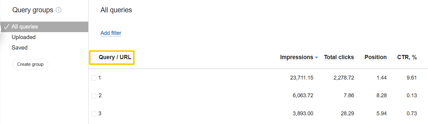 To create a group, you need to copy the search queries from the list of all queries. There are several ways to do this: