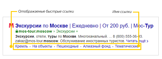 После того как вы отредактировали быстрые ссылки, изменения отобразятся в результатах поиска в течение двух недель.