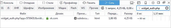 Ниже приведен пример работы в веб-консоли Mozilla Firefox с авторизацией во Вконтакте.