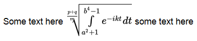 5. %%(math inline) \sqrt{x}+\sqrt[10]{y}\leq \frac{1+|\vec{z}|}8%% |