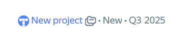 To add a magic link to Wiki, copy the full address of the project, portfolio, goal, dashboard, queue, or component and paste it into the text of the page. These links include the Yandex Tracker logo, an icon that shows the entity type, and the name. Links to some entities may also include other attributes, such as status and deadline.