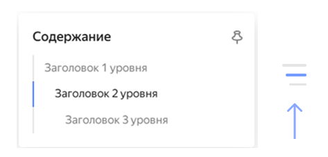 Наведите указатель на схему заголовков у правого края страницы, появится панель с содержанием.