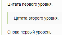 <[Цитата первого уровня. >Цитата второго уровня Снова первый уровень.]>Как выглядит результат