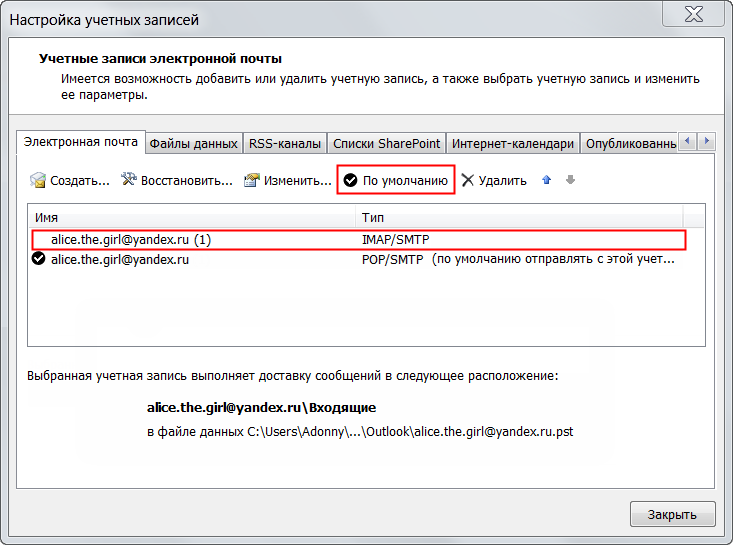 В той же почтовой программе, где настроена учетная запись по протоколу POP3, создайте учетную запись, работающую по протоколу IMAP. При создании используйте тот же логин и пароль, что и в учетной записи, работающей по протоколу POP3.