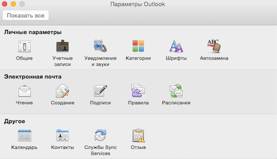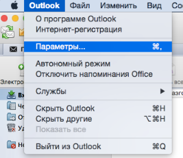 В меню выберите Outlook → Параметры.