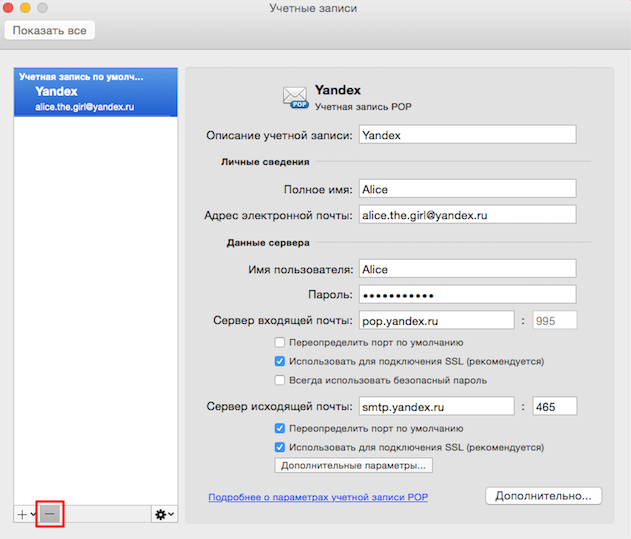Выберите учетную запись, работающую по протоколу POP.