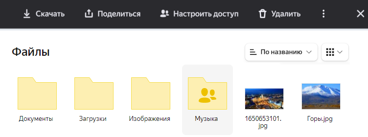 Чтобы посмотреть, у кого есть доступ к папке, выберите папку и на верхней панели слева нажмите .