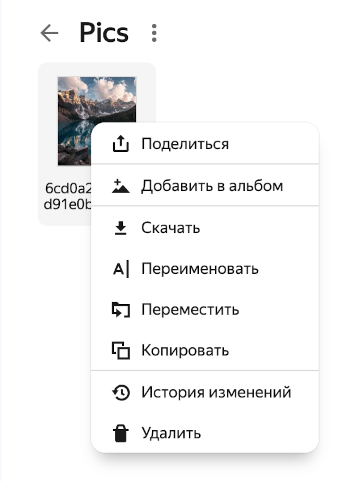 - имя (чтобы его изменить, нажмите Переименовать на верхней панели или в контекстном меню);