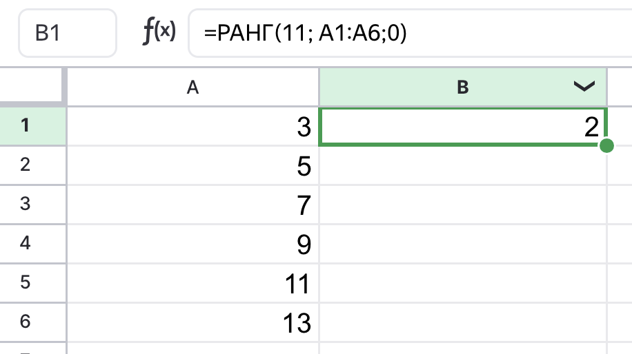 Значение, ранг которого нужно найти. Если указать число вне диапазона, то вернется ошибка |